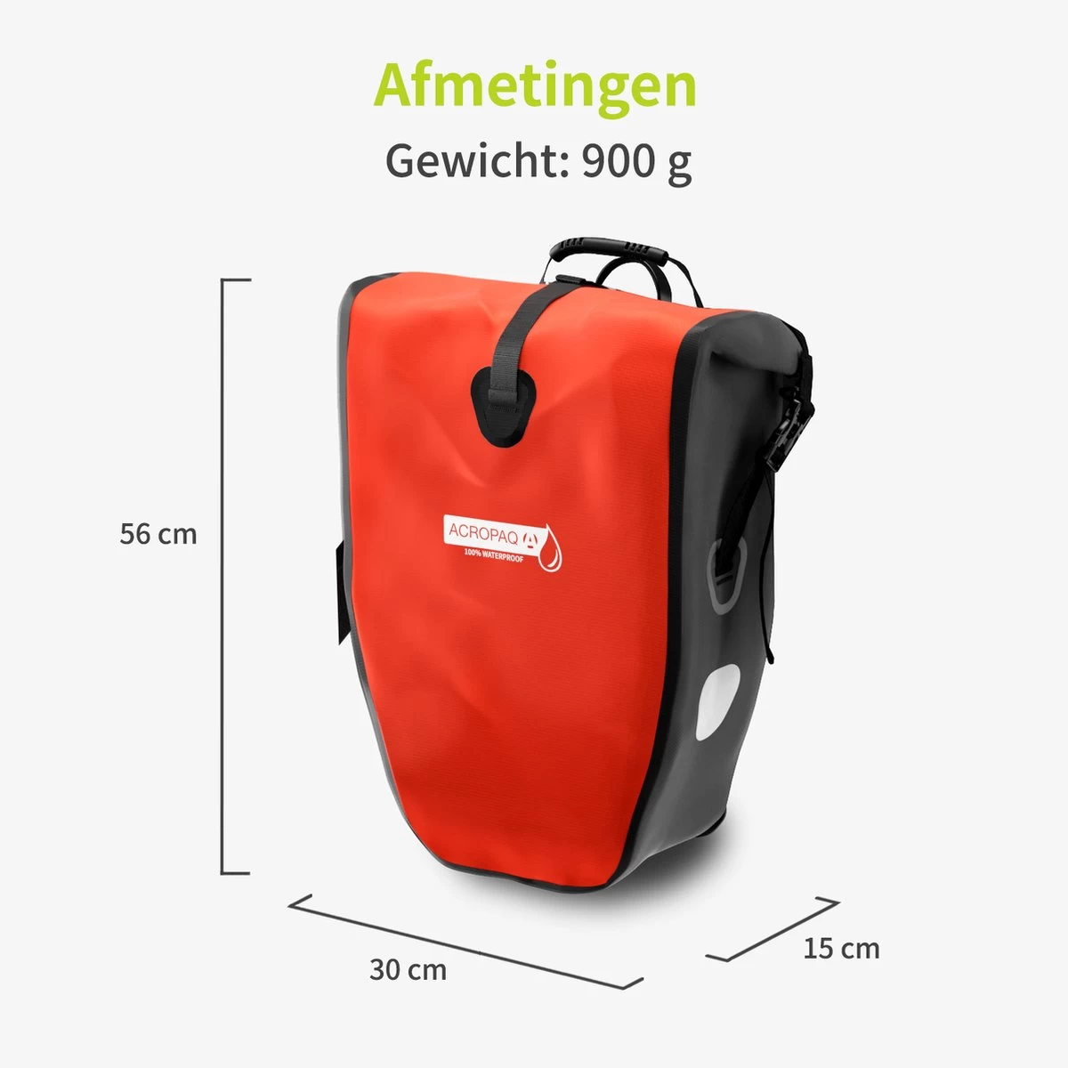 ACROPAQ Fietstas – Enkele, 25L, Waterdicht, Dragen Als Handtas En Schoudertas, Met Reflectoren – Ook Voor Elektrische Fietsen – Oranje