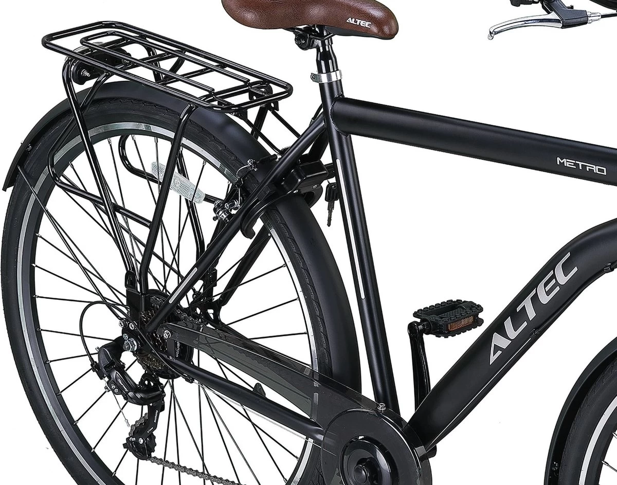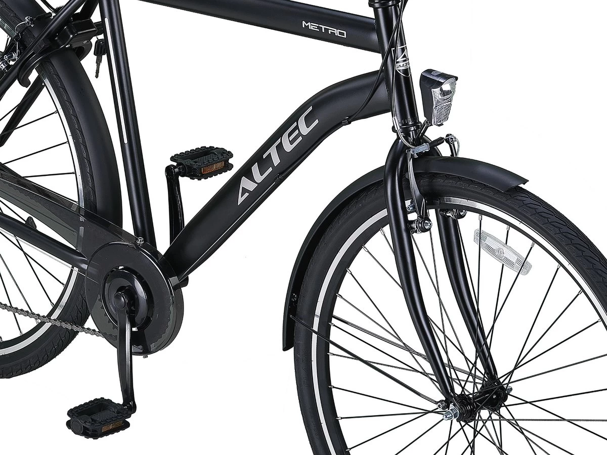 Altec Metro Herenfiets 28 inch 56cm 7vOnze Altec fietsen zijn nog niet afgemonteerd en worden in een doos verstuurd. Zie de handleiding onderaan voor instructies. Altec Metro Herenfiets 28 inch 56cm 7v De Altec Metro is een betaalbare stadsfiets met maar liefst 7 Shimano versnellingen. Een stadsfiets met dit aantal versnellingen tegen deze prijs vind je niet snel! Altec Metro Herenfiets 28 inch 56cm 7v stadsfiets beschikt over een aantal fijne eigenschappen. De prijs is wellicht het eerste wat je opvalt en dat is zeker een goed aspect van deze fiets. Het design van deze fiets is bovendien erg modern en komt dan ook goed tot zijn recht in een stedelijke omgeving. Zwart is sowieso een kleur die erg mooi staat. Het materiaal van het frame is staal. Hierdoor is de fiets wel wat zwaarder, maar aan de andere kant ook erg stevig. Let wel op, oxidatie is bij staal niet uit te sluiten. Daarom kunnen we je als tip meegeven deze in te spuiten met blanke lak.Je kunt de fiets onder controle houden door middel van de veilige V-brake handremmen. Het beste aan deze elegante stadsfiets zijn toch wel de 7 versnellingen. Hiermee zijn de snelheid en trapzwaarte van jouw fiets altijd op het niveau dat perfect is voor jou. De velgen bestaan, in tegenstelling tot het frame uit aluminium. Lichtgewicht en roestvrij dus! Voor de fanatieke fietser die ook sโ nachts gebruikt wilt maken van de Altec Metro, zit er op zowel de voor als achterkant LED verlichting. De Altec Metro is een leuke fiets voor een scherpe prijs. De v-brake en derailleur moeten nauwkeurig en met enige regelmaat afgesteld worden voor een optimale prestatie. Dit is een leuke fiets voor af en toe waar je niet een hele grote verwachting bij moet hebben. Voor dagelijks en intensief gebruik kunnen we andere alternatieven aanbieden. Zoals hierboven weergegeven. De Altec Metro kan je in doos of rijklaar aanschaffen. Ons advies is om een fiets altijd rijklaar aan te schaffen. Dit komt omdat het afstellen van de derailleur versnellingen lastig kan zijn. Zo weet je zeker weet dat een fiets door een vakkundige monteur is afgemonteerd. Een veilige en goede montage is niet alleen belangrijk voor goede prestaties van de fiets, maar ook voor de slijtagegevoeligheid van bepaalde onderdelen. Meer informatie over de Altec metro (https://www.superfietsen.nl/service/informatie-over-de-altec-metro/) Shimano derailleur 7: Shimano derailleur 7 biedt een zeer ruime keuze in versnellingen
