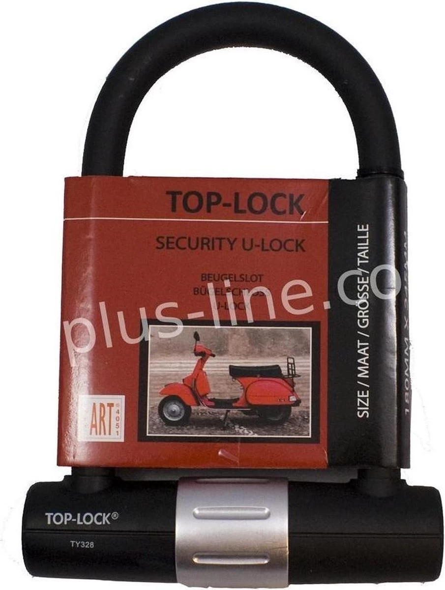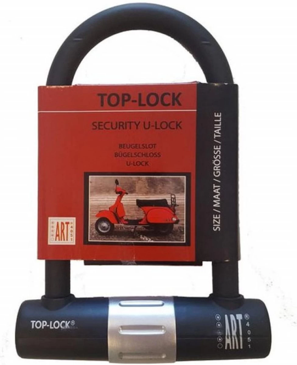 Beugelslot ART 4 180mm x 245mm. Geschikt om te gebruiken als fiets- scooter en motorslot. Slot zeer geschikt voor scooters waarbij een kettingslot niet door de velgen past. Gemakkelijk in gebruik voor het snel op slot zetten van de tweewieler.