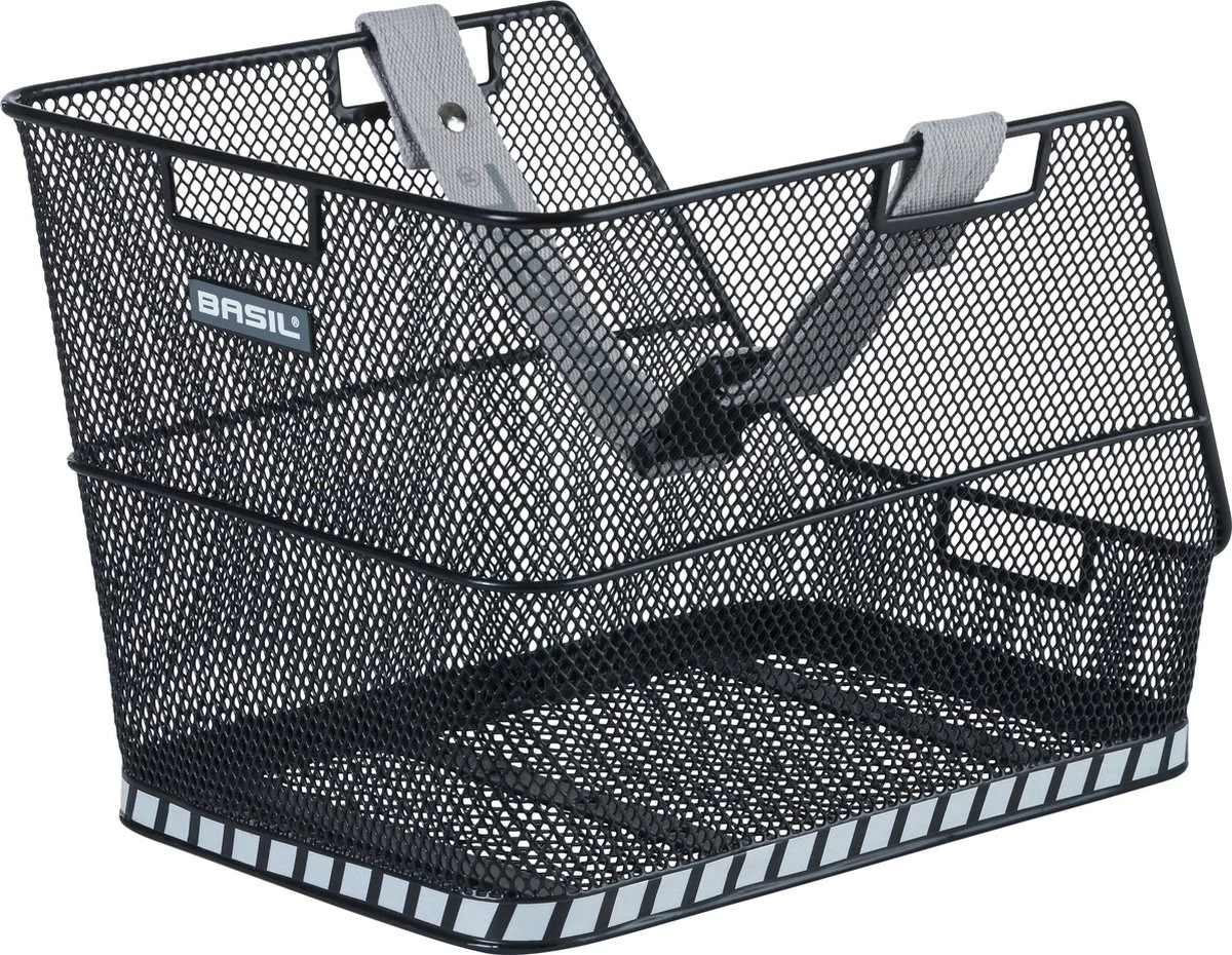De Basil Class is een trendy en praktische schoolbag basket voor scholieren en studenten en komt voor elke fietsrit naar een school of universiteit goed van pas. Deze handige fietsmand uit de Basil collectie is verkrijgbaar in de kleur zwart. De fietsmand kan zowel door jongens als meisjes worden gebruikt voor het vervoer van een schooltas of rugzak. Het is een perfecte methode om je schooltas veilig mee te nemen op de fiets en bovendien voorkom je daarmee dat schoolboeken op straat komen te liggen. De Basil Class fietsmand is eenvoudig te monteren op de bagagedrager van je fiets. Dit realiseer je eenvoudig en snel met het bijgeleverde bevestigingsmateriaal. De bewegingsvrijheid tijdens het fietsen wordt gestimuleerd door een afgeschuinde kant van de fietsmand aan de zadelzijde. De fietsmand wordt bovendien geleverd met een afneembare band. Een schooltas of rugtas blijft daardoor te allen tijde stevig op de fiets vastzitten. In het donker ben je goed zichtbaar vanwege een reflectiestrook die zich aan de onderkant bevindt van de fietsmand. Daardoor ga je altijd veilig de weg op. Wil je nog meer fietsmanden bekijken waarmee je je schooltas veilig kunt vervoeren? Neem gerust een kijkje bij de uitgebreide Basil collectie in onze online winkel. Eigenschappen: De Basil Class fietsmand is een praktische en moderne fietsmand voor het veilig vervoeren van je schooltas. Je schooltas zet je stevig vast met de afneembare band. De fietsmand wordt geleverd inclusief het bevestigingsmateriaal voor aan de bagagedrager. Dankzij de reflectiestrook aan de onderkant van de mand, fiets je ook tijdens een donkere winterochtend veilig naar school of de universiteit.