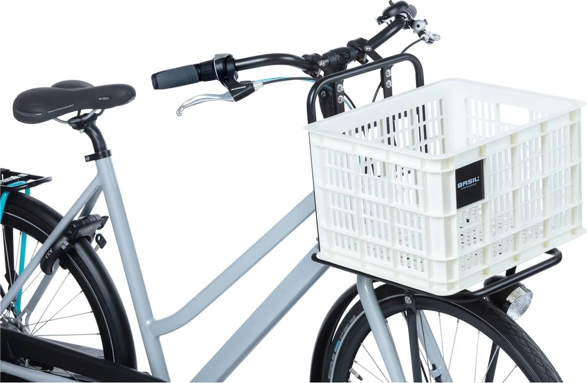 De krat kun je op meerdere manieren bevestigen. Voor een vaste montage kun je gebruik maken van de Basil Crate mounting set. Wil je de mand afnemen? Kies dan voor bevestiging met een adapterplaat. De krat is namelijk ook geschikt voor MIK, Racktime of AtranVelo adapterplaten. Deze adapterplaten dien je apart aan te schaffen.
