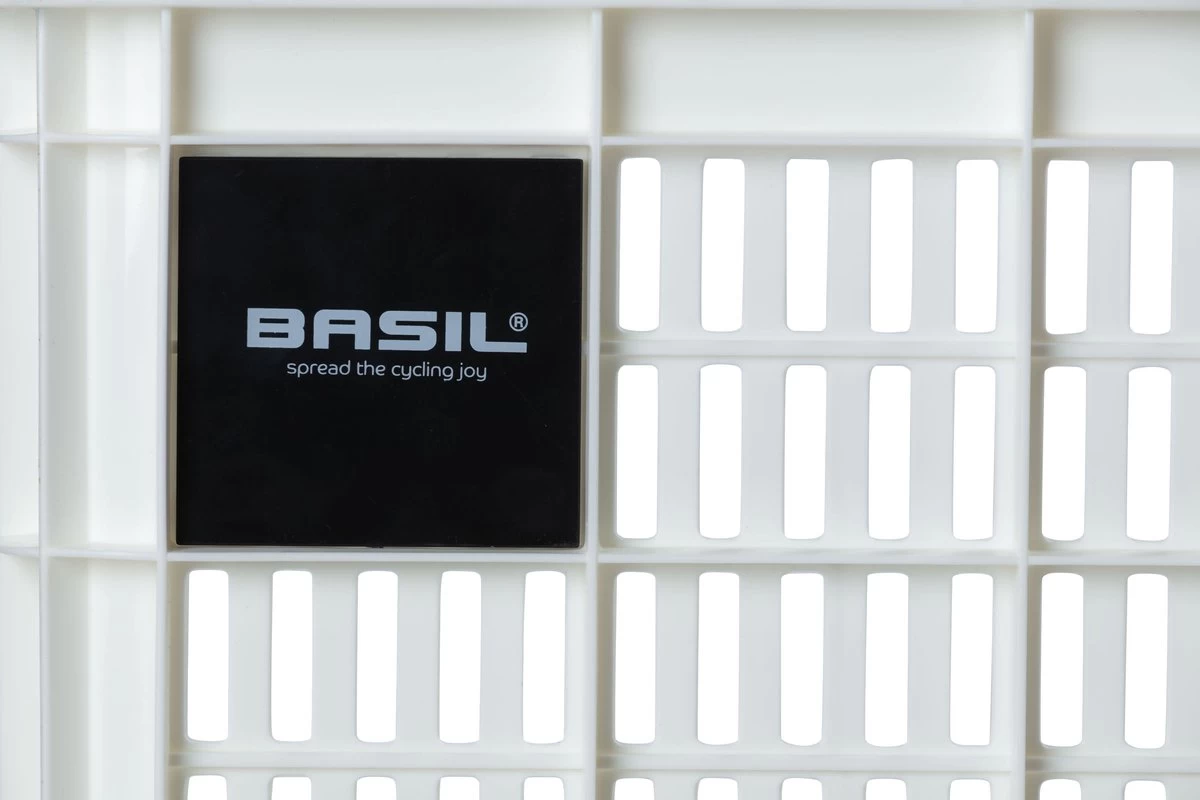 Ben je op zoek naar een hippe fietskrat? Dan is de Basil fietskrat in de maat medium iets voor jou! Deze medium krat heeft met een inhoud van 27 liter genoeg ruimte. De krat is gemaakt van kunststof en heeft een trendy witte kleur. Daarnaast wordt de krat inclusief kratklikker geleverd. Deze kratklikker met logo heeft een contrasterende kleur en laat je krat nog meer opvallen.