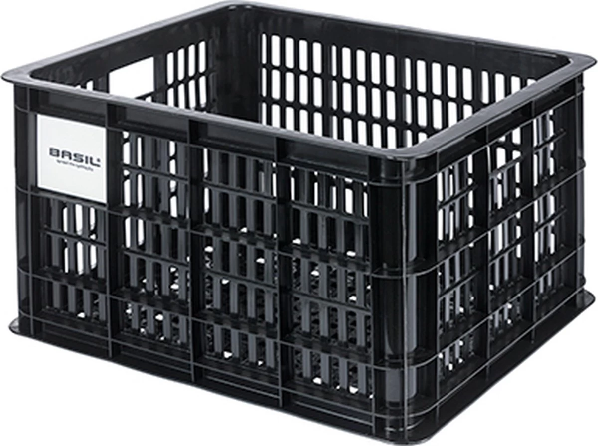 De Basil fietskrat in de maat M is een zwarte fietskrat voor op een dames- of herenfiets. De fietskrat is gemaakt van duurzaam materiaal, heeft een inhoud van 29,5 liter en is geschikt voor het MIK systeem.