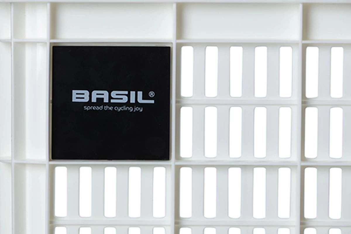 De Basil fietskrat in de maat S is een witte fietskrat voor op een dames-, heren – of kinderfiets. De fietskrat is gemaakt van duurzaam materiaal en heeft een inhoud van 17,5 liter.