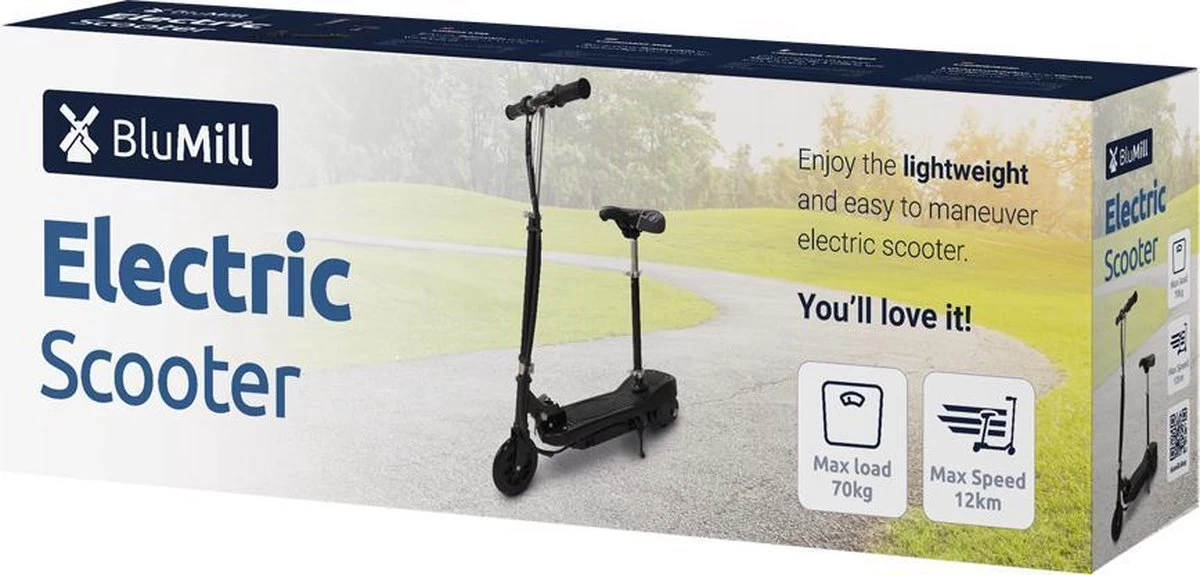 De BluMill Elektrische Step oftewel E-Step zorgt voor urenlang plezier, lekker in de buitenlucht! Het is een elektrische step voor kinderen van 7 jaar en ouder en een elektrische step voor volwassenen met een maximaal gewicht van 70 kg. De step is speciaal ontworpen voor buitenshuis en heeft een milieuvriendelijke elektrische 120W-motor waardoor de step tot wel 12 km/u kan gaan. Hij wordt geleverd met een krachtige accu die een afstand kan afleggen van wel 15 kilometer, compleet soepel en stil.