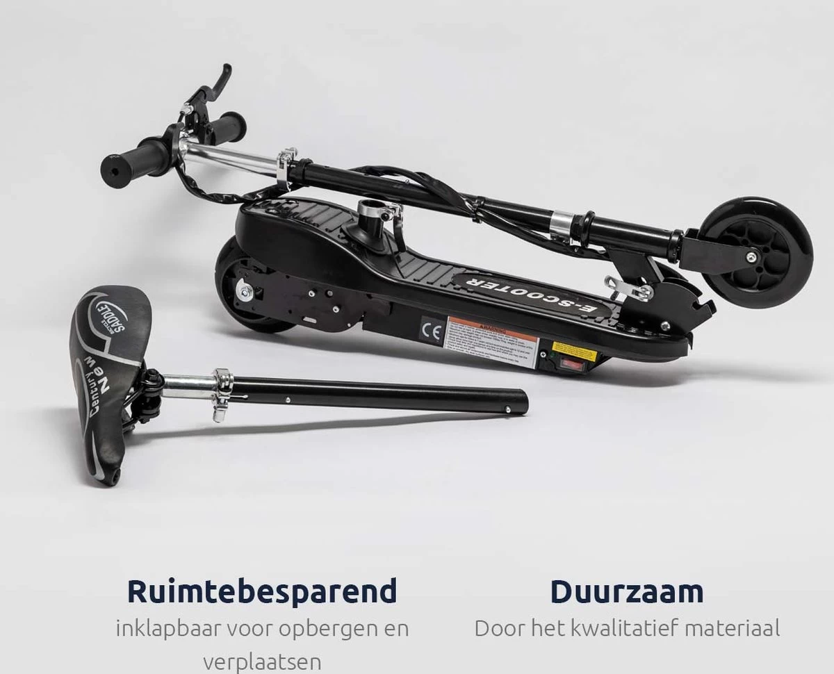 Het stuur van de BluMill Electric Scooter is in hoogte verstelbaar van 82 – 93 cm, zodat iedere bestuurder een fijne rijhouding heeft. De E-scooter is ook uitgerust met een comfortabele, in hoogte verstelbare zadel, waarmee het mogelijk is om te rijden in zithouding. De elektrische step heeft een stevig frame van aluminium en staal en een antislip oppervlak voor extra veiligheid. De kleine voet standaard maakt het mogelijk om de step rechtop neer te zetten. Als de elektrische step moet worden opgeborgen of meegenomen, kan hij snel en gemakkelijk worden samengevouwen door het inklapmechanisme. Zo bergt u hem makkelijk op in de schuur of garage, of neemt u hem compact mee onderweg.