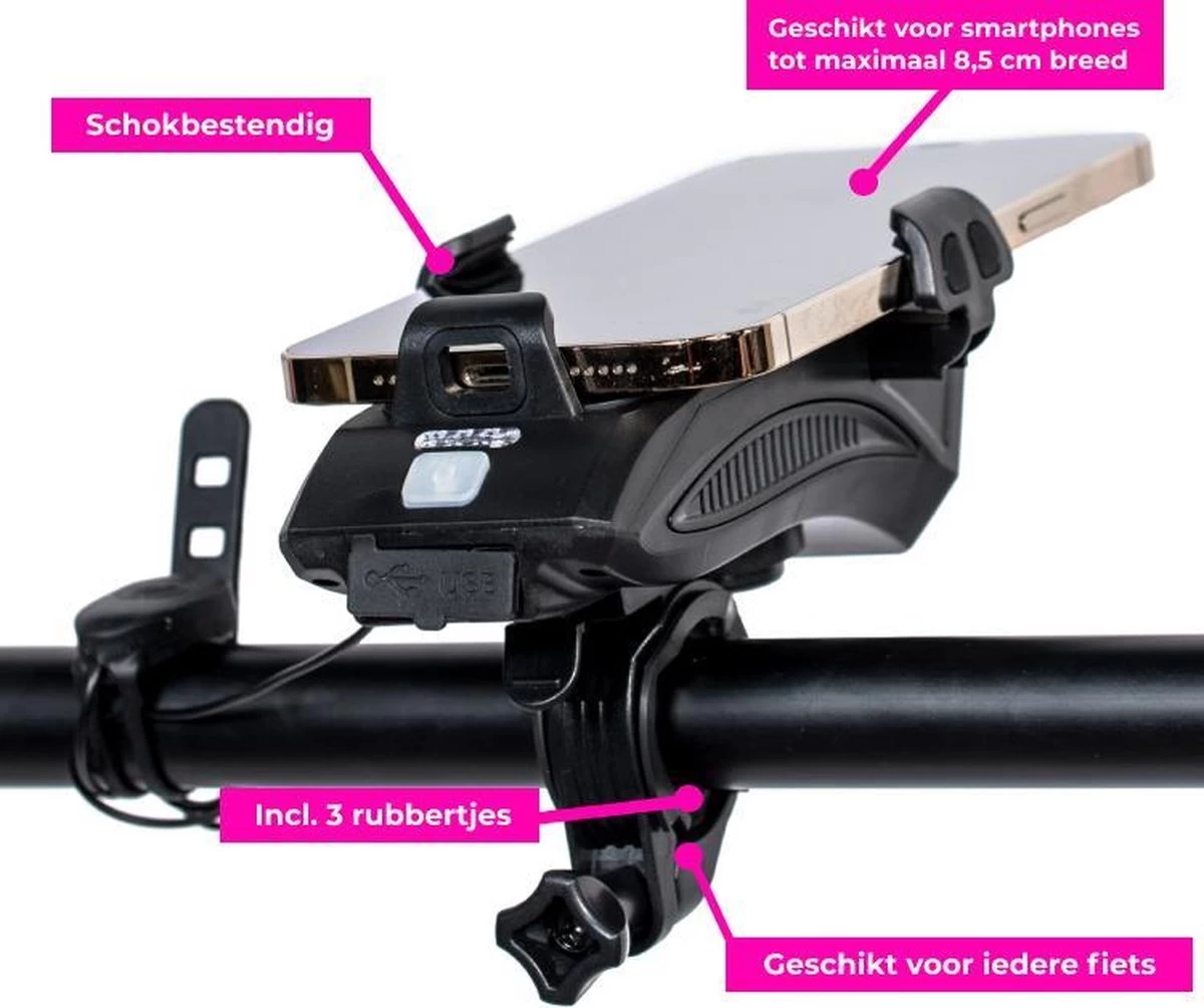 Altijd een opgeladen telefoon en ga veilig de weg op met de BOLED Telefoonhouder Fiets 4-in-1 met Powerbank!