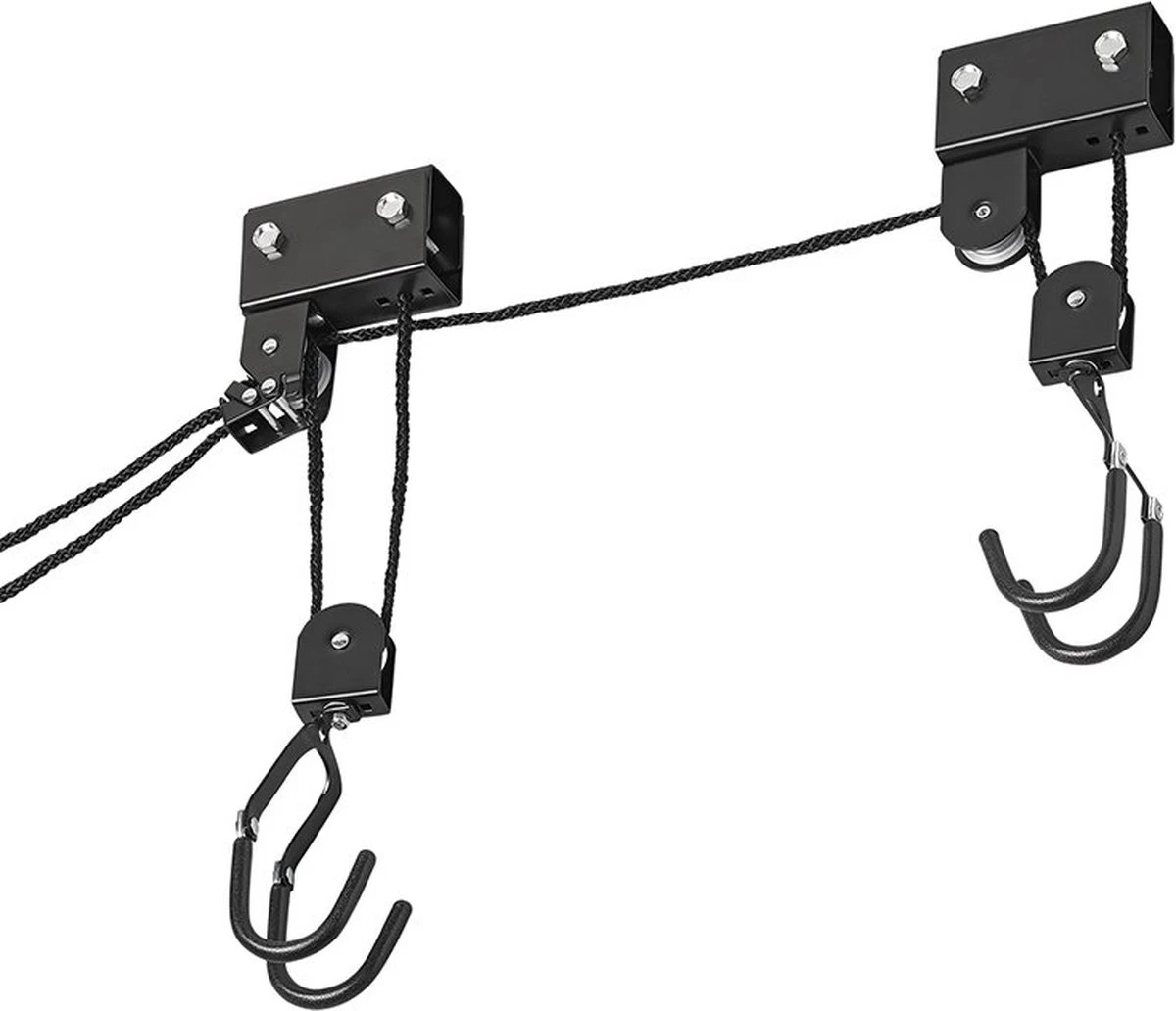 Gebruik deze fietslift om eenvoudig ruimte te creëren in je schuur, storage box, of andere opslagruimtes. De fietslift is makkelijk te monteren aan het plafond en is geschikt voor de meeste soorten fiesten, kayak’s, ladders of andere spullen die je aan het plafond wil opbergen. Door de meerdere bevestigingspunten zit het ophangsysteem stevig vast en kan de takel meer dan 50 kg hebben.