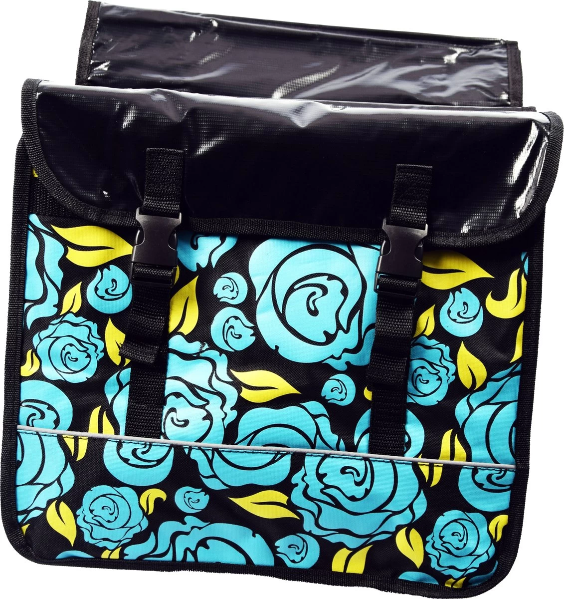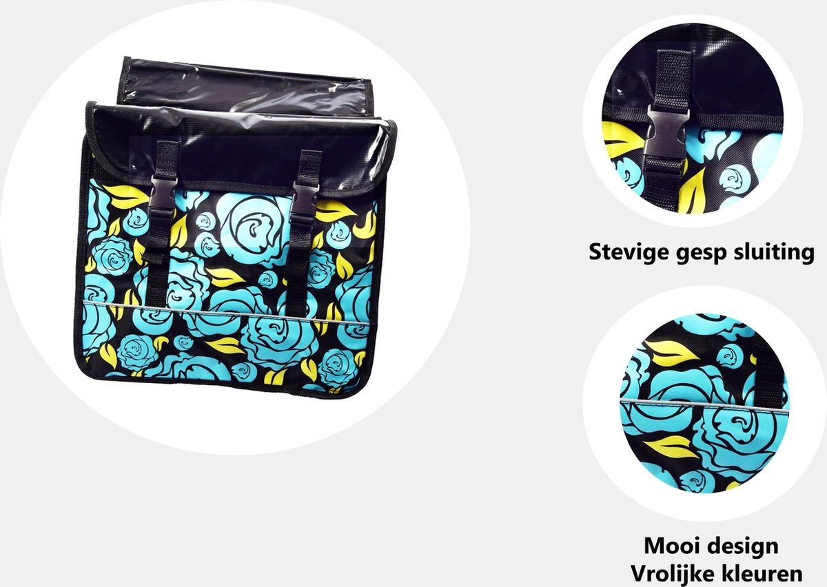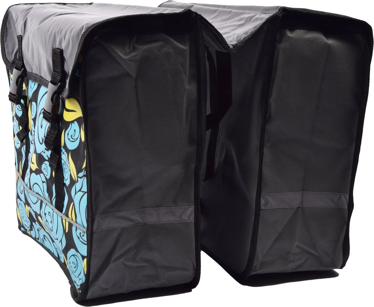 De tassen zijn voorzien van reflectiebanden om beter op te vallen in het verkeer. De dubbele fietstas kan eenvoudig aan de bagagedrager worden bevestigd met de klittenbandsluiting. Tevens kan hij op elke fiets met bagage drager.