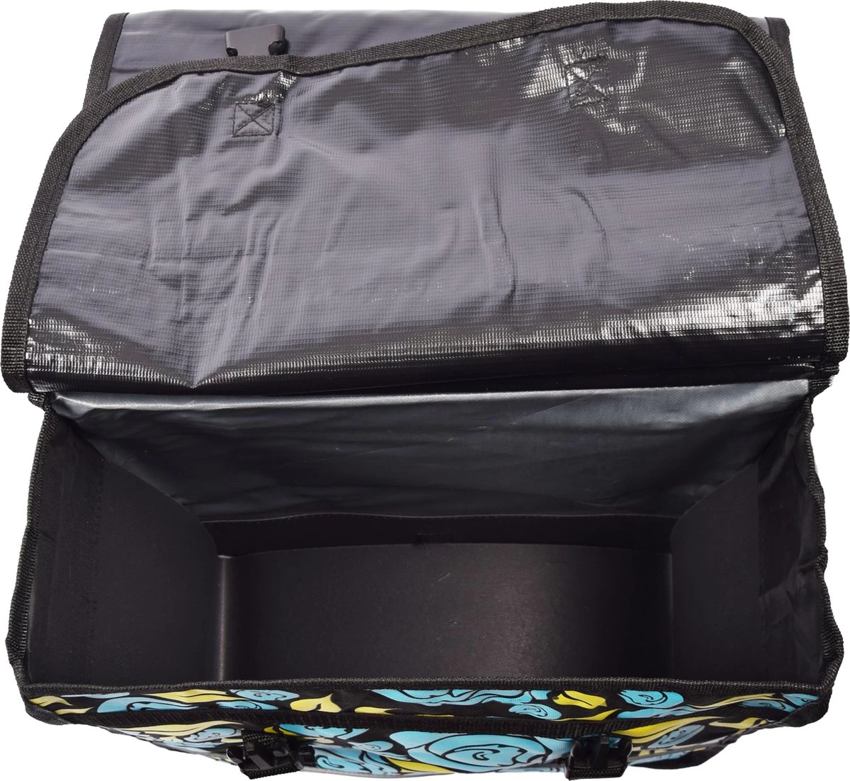 Dubbele fietstas en hij is 2 zijdig met 17.5 liter inhoud.