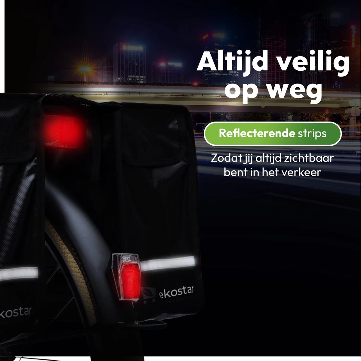+ Veilig op pad in het donker door de grote reflectoren aan de achterzijde
