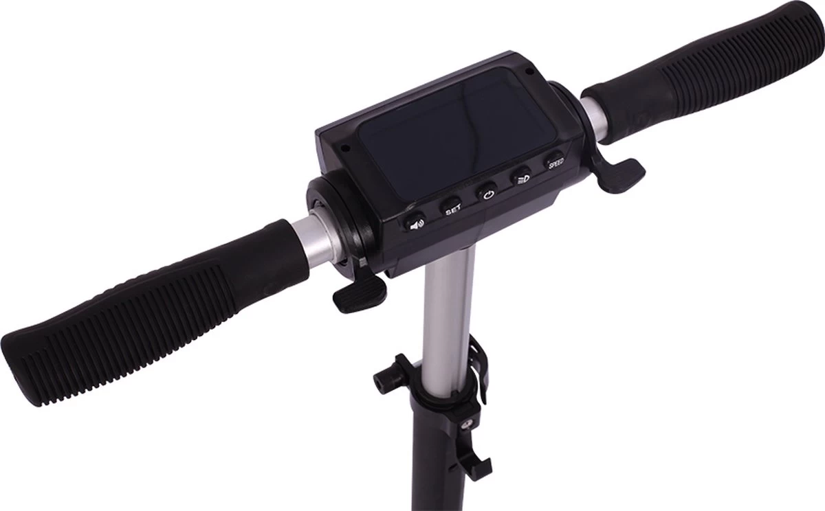 De E-step wordt geleverd met een LED monitor midden op de stuur. Je kunt verschillende handelen uitvoeren die je direct op de LED monitor kunt aflezen. Met de middelste knop kun je de E-step aanzetten als je het 3 seconden ingedrukt houdt. Druk je vervolgens op de meest rechte knopt? Dan kan je de snelheid aanpassen. Rechts centraal heb je de knop waarmee je het licht aan kan zetten. De bediening is dus zeer gemakkelijk.