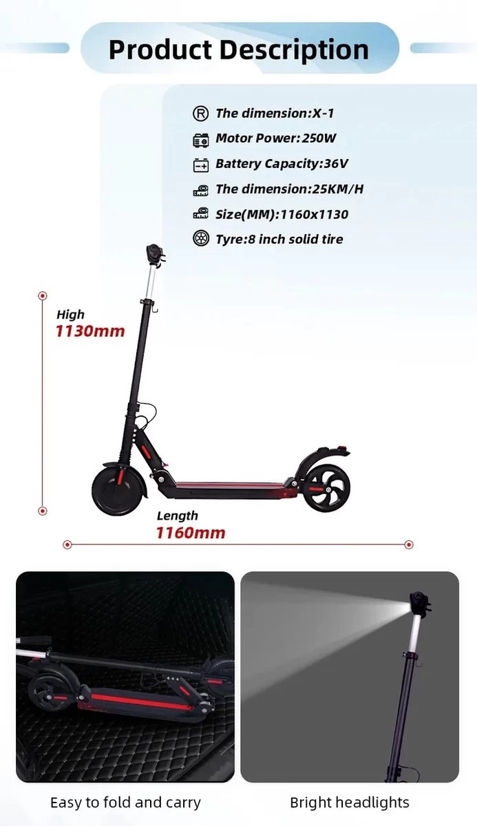 Maak kennis met de ElectronicWorks AiE-1 E-step. Deze E-step zit bomvol accessoires om ervoor te zorgen dat je een perfecte reis kunt afleggen, waar je ook maar bent. De E-step komt met een krachtige 250KW borstel loze motor die minimale onderheid vereist. De E-step wordt geleverd met dikke banden om ook op ruige terrein goed te presteren. Daarnaast kun je een LED paneel midden op de E-step stuur vinden waar je verschillende informatie af kunt lezen zoals de KM/Snelheid/Accu.