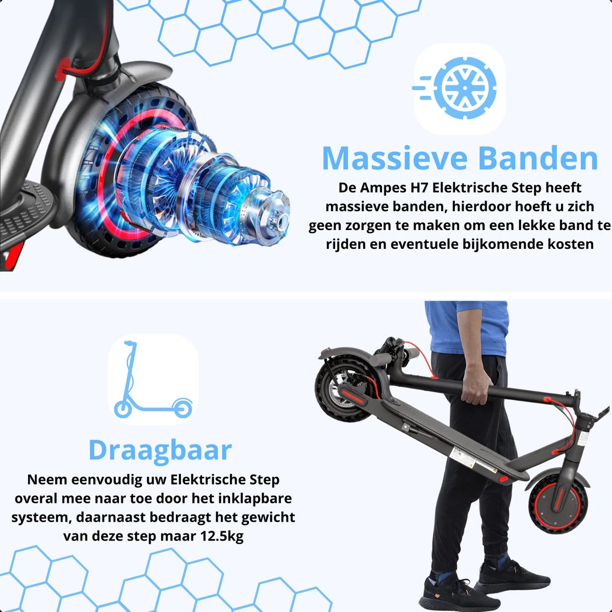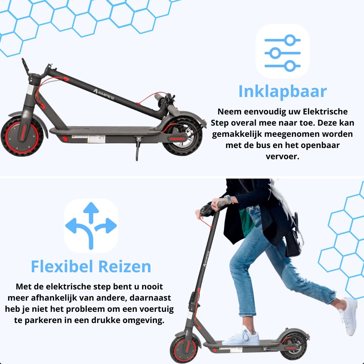 Elektrische Step – Ampes – 30/35KM Bereik – 350W – Opvouwbaar – 30km/h – 7.8Ah Batterij – 8.5″ Anti-Lek Banden – H7