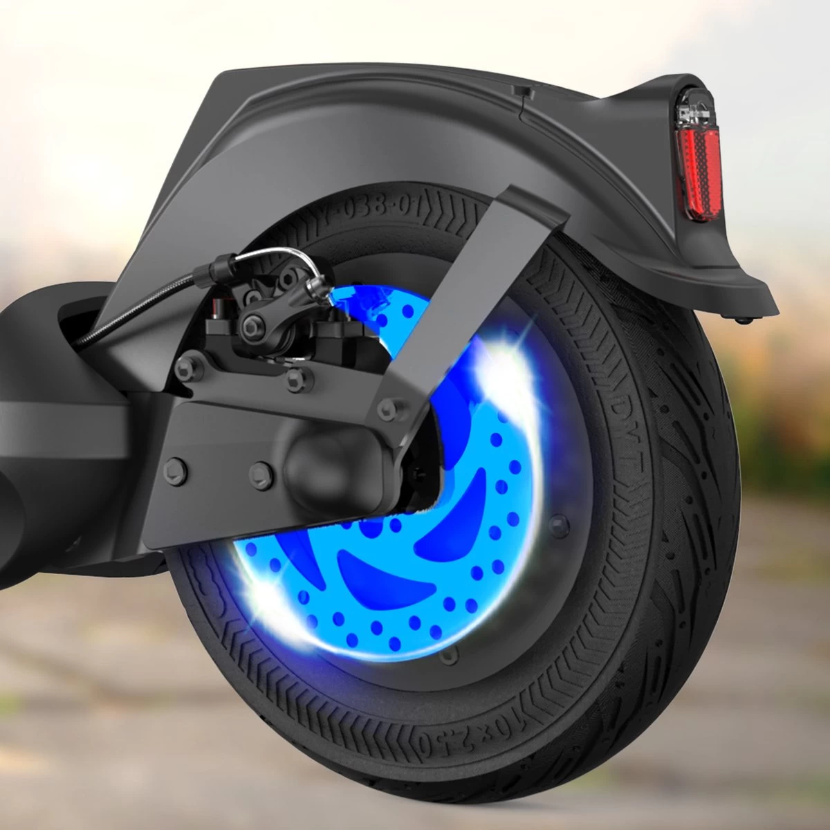 De twee rode strepen op de staander van de step zien er zijdezacht uit en voegen een gevoel van luxe toe. Bovenaan is nog nooit zo’n verfijnde LED-meter gezien. Het scherm van de meter is niet van gewoon glas, maar van een halfdoorzichtig, helder digitaal scherm met een unieke stijl, wat de kwaliteit van de R10X elektrische step volledig tot zijn recht laat komen.