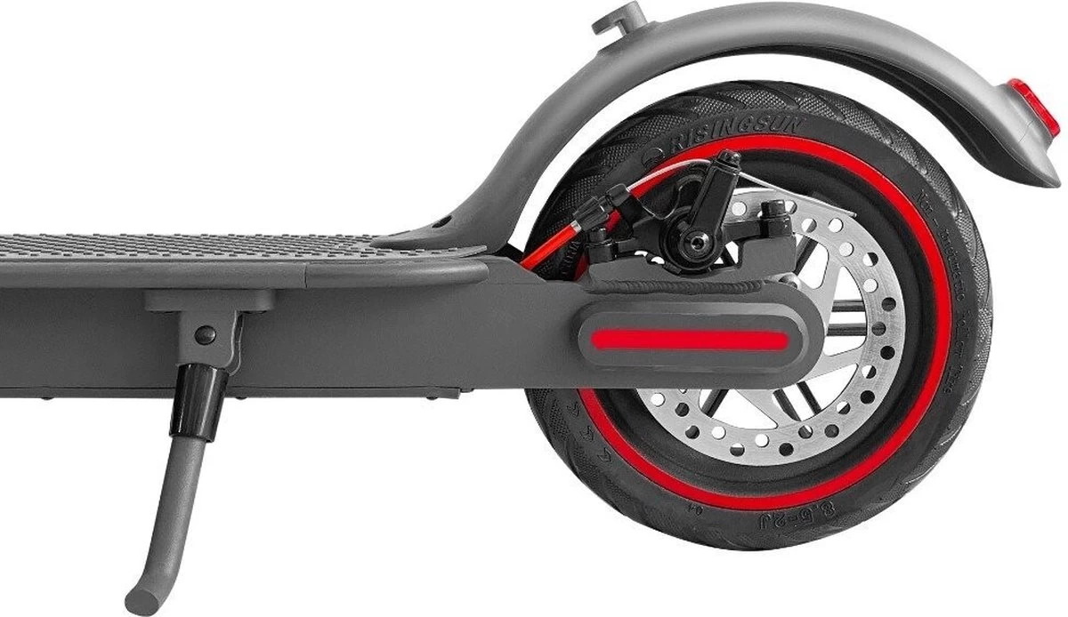 De QmWheel H7 is voorzien van 8.5 inch honinggraat rubberen anti lek banden. De banden zijn schokbestendig, antislip en geschikt voor de meeste weg omstandigheden. De schokdemping aan het voor- en achterwiel zorgt voor maximaal rijcomfort, terwijl het elektronisch antiblokkeersysteem en mechanisch remschijf remsysteem, een veilige remweg verzekert.