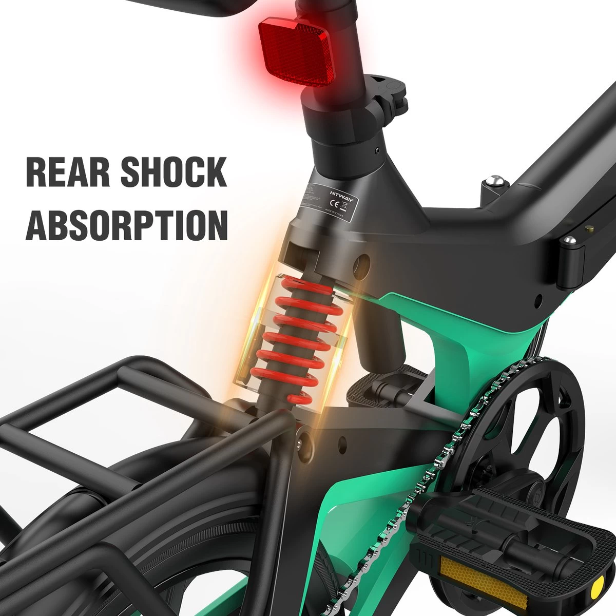 Draagbare en comfortabele elektrische fiets: vriendelijk ontwerp, klein en draagbaar. Het gewicht is slechts 22,5 kg en kan snel worden opgevouwen. Dubbele schokabsorptie, schokabsorptie van de voorvork en schokabsorptie in het midden, uitgerust met een groot zadel, die stoten op het lichaam aanzienlijk verlicht, maakt het rijden comfortabeler en stabieler.