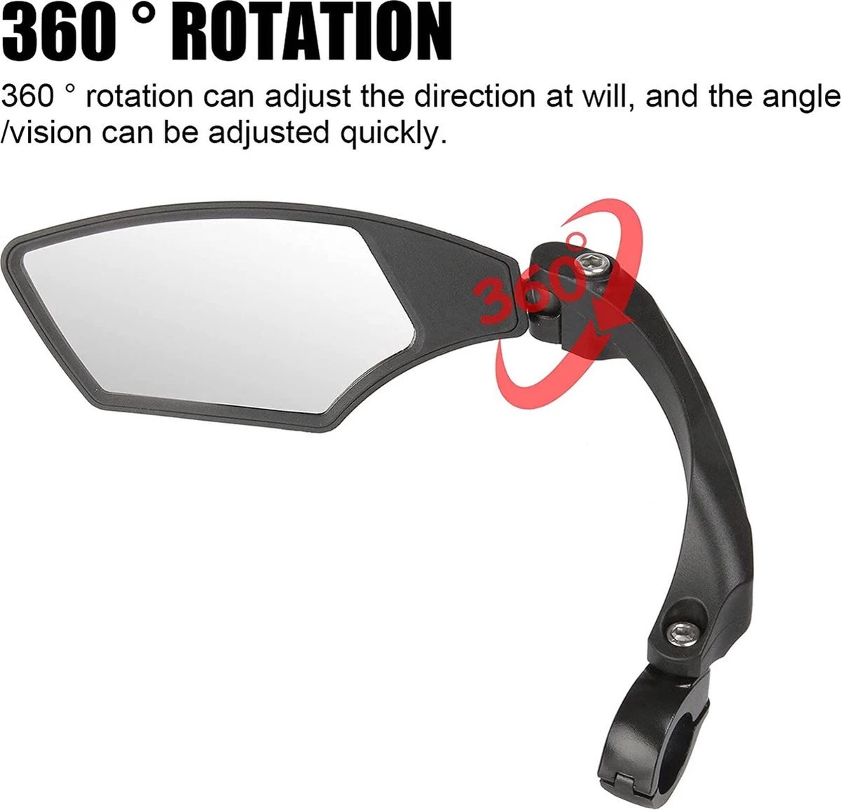 De Igoods fietsspiegels zijn gebouwd om 360ยฐ te draaien voor maximale dekking. Het is heel eenvoudig aan te passen aan de gewenste hoek en probleemloos te installeren. Vergeet niet om de schroef vast te draaien na het afstellen.