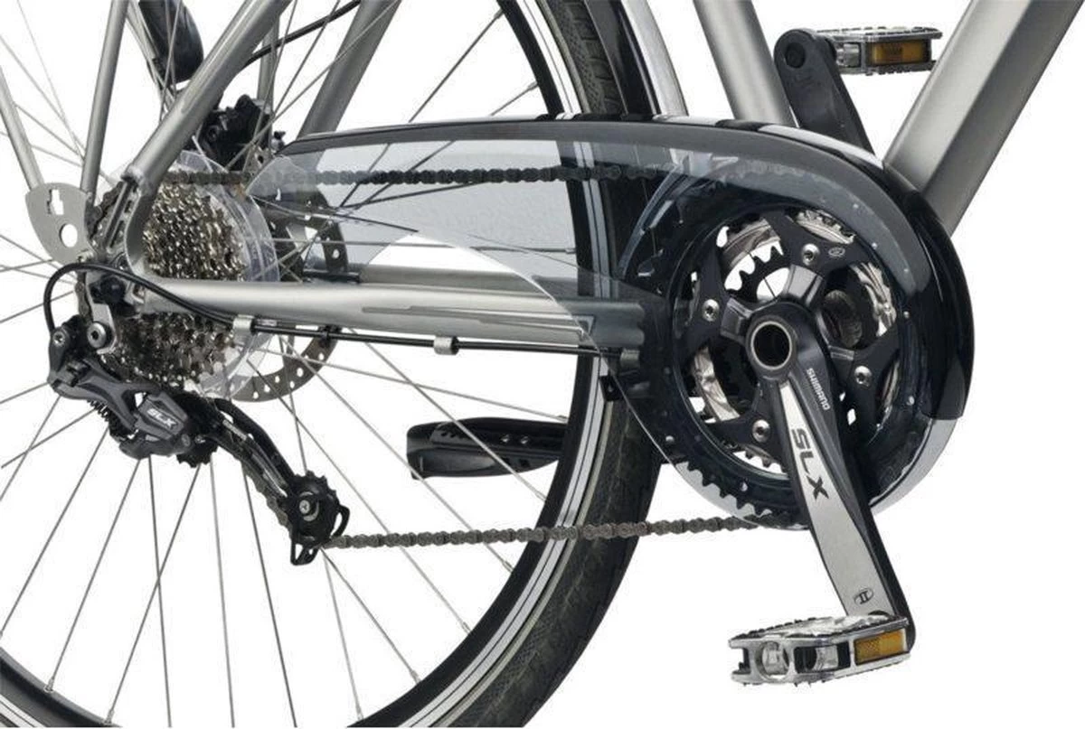 De AXA Scope2 is een modern vormgegeven kettingscherm met eenvoudige montage. Beschermt uw kleding tegen beschadigingen, en beschermt uw ketting tegen weersinvloeden als vocht en vuil. Het elegante ontwerp wordt gecompleteerd door de gekleurde strip die de montagegaten afdekt. U kunt ter plekke beslissen welke kleur strip u gebruikt, omdat zowel de zilveren als de zwarte strip met het scherm meegeleverd worden. De Scope2 is geschikt voor montage op single en triple tandwielen met 48 tanden. VEILIGHEID Optimale bescherming van uw kleding Langere levensduur ketting doordat deze beschermd is tegen vocht en vuil COMFORT Eenvoudige montage door crankbeugel en geintegreerde achter bevestiging TECHNIEK Geschikt voor 48 tands tandwielen Materiaal scherm polycarbonaat (light smoke) en ABS strips (zilver en zwart)