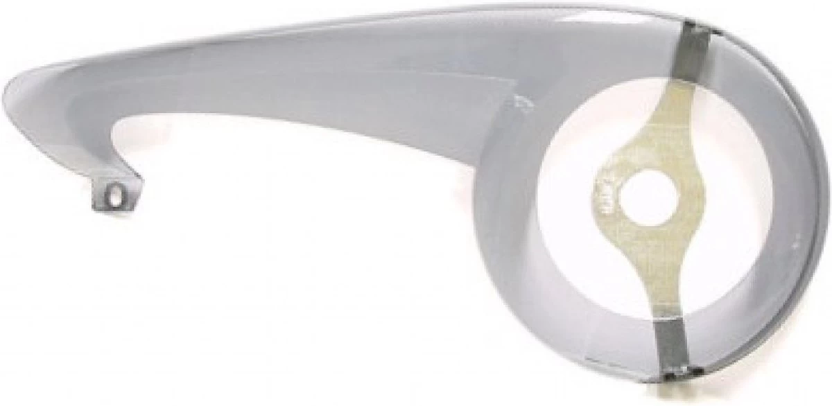 Hesling Flex kettingscherm voor 28″ fietsen Kleur: transparant Materiaal: kunststof Lengte: 50 cm Hoogte: 21 cm Diameter crankgat: 14 cm Wordt alleen geleverd met bracketbeugel.