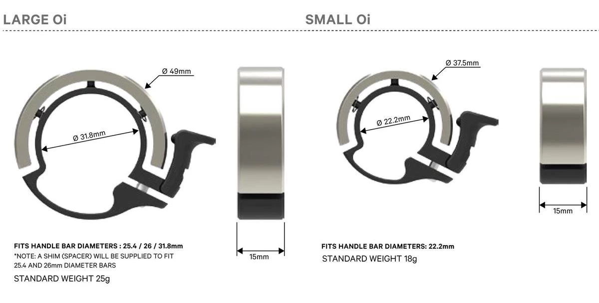 De Knog Oi Classic Small Fietsbel is een handige en praktische fietsbel die op bijna ieder stuur is te monteren. Vind jij het ontwerp van fietsbellen vaak niet mooi of zit een fietsbel op je stuur altijd in de weg? Dan is de Knog Oi Classic Small fietsbel een perfecte keuze. Deze bel beschikt namelijk over een zeer fraai en onderscheidend design en produceert een heldere en duidelijk toon die van grote afstand al hoorbaar is. Hij is gemaakt van CNC gefreesd aluminium en gaat dan ook zeer lang mee.