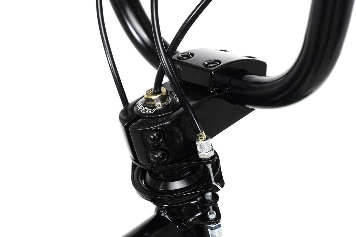 De stoere bike voor de allerlaagste prijs overtuigt echter ook door zijn technische uitvoering: uiteraard is de fiets uitgerust met een 360ยฐ-rotor, waardoor het stuur helemaal rond kan. Voor trucs en moves worden vier stalen pegs bijgeleverd โ uiteraard in zwart! Remmen kun je met V-brakes voor en achter.