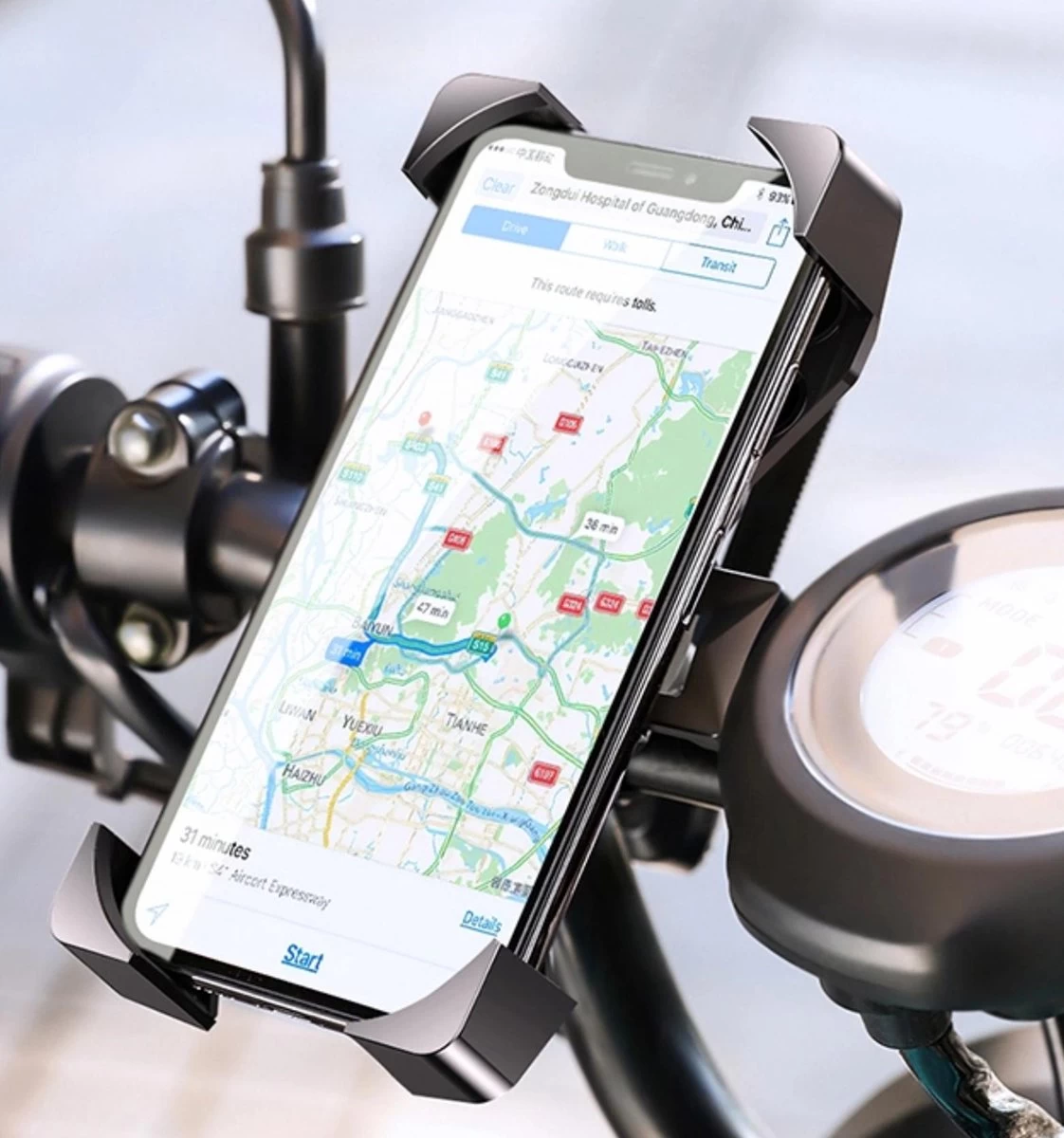 De telefoonhouder heeft een praktisch bevestigingssysteem dat verstelbaar is, deze is geschikt voor sturen met een diameter van 2 – 4.7 centimeter. Je bevestigt de telefoonhouder eenvoudig aan het stuur, waarna je deze kan aandraaien. Op deze manier zal de telefoonhouder de gehele rit stevig blijven zitten. Bovendien kan de telefoonhouder tegen een stootje en is deze schok- en krasbestendig. Wel zo fijn voor de pechvogels onder ons.