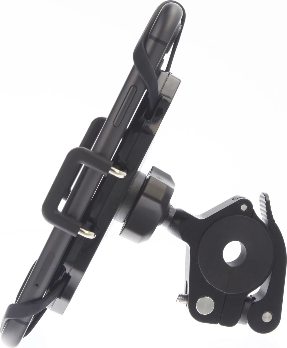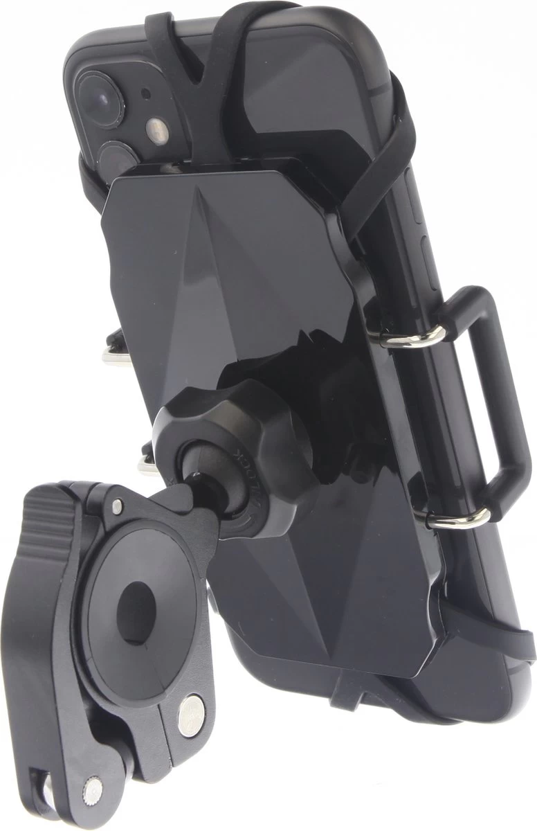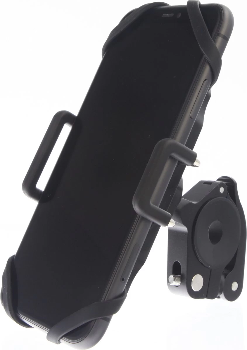 De houder is voorzien van een kogelscharnier wat ervoor zorgt dat je de telefoon tot 360° graden kan draaien.