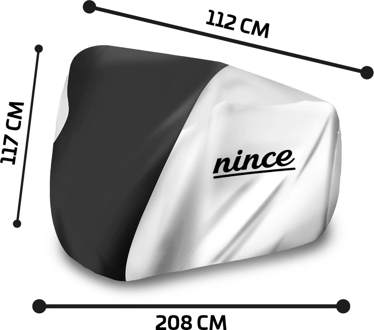 Met de Nince waterbestendige fietshoes voor buiten bescherm jij je fiets(en) eenvoudig tegen stof, vuil, zon, regen, UV en andere verontreinigende stoffen. De fietshoes is gemaakt van hoogwaardig 210D materiaal en is geschikt voor 2 tot 3 (electrische)fietsen. Met de fietshoes houd jij je fiets als nieuw!