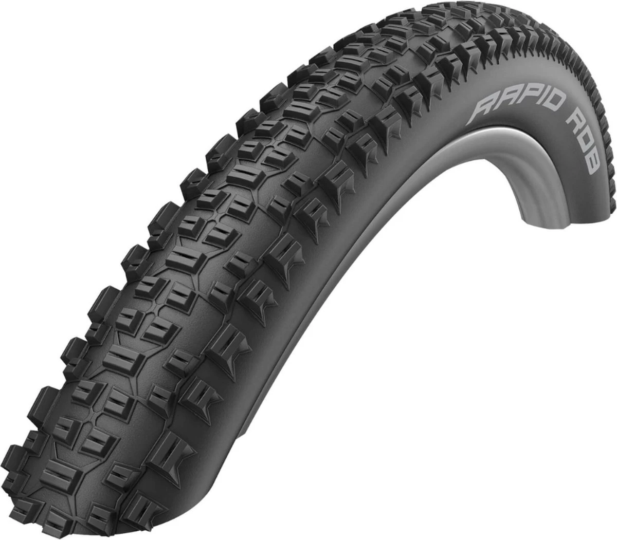 Schwalbe Buitenband – Rapid Rob Zwart 29×2.10/54-622. Topkeus voor instappers. Eerste klas bandenbombinatie als attractief instapmodel. Rapid Rob heeft het voormalige profiel van de Racing Ralph. Het is een XC band pur sang en het best geschikt voor het achterwiel. Tough Tom, met het voormalige profiel van de Nobby Nic, is de juiste keus voor ruigere trails of voor het voorwiel. Pluspunten: