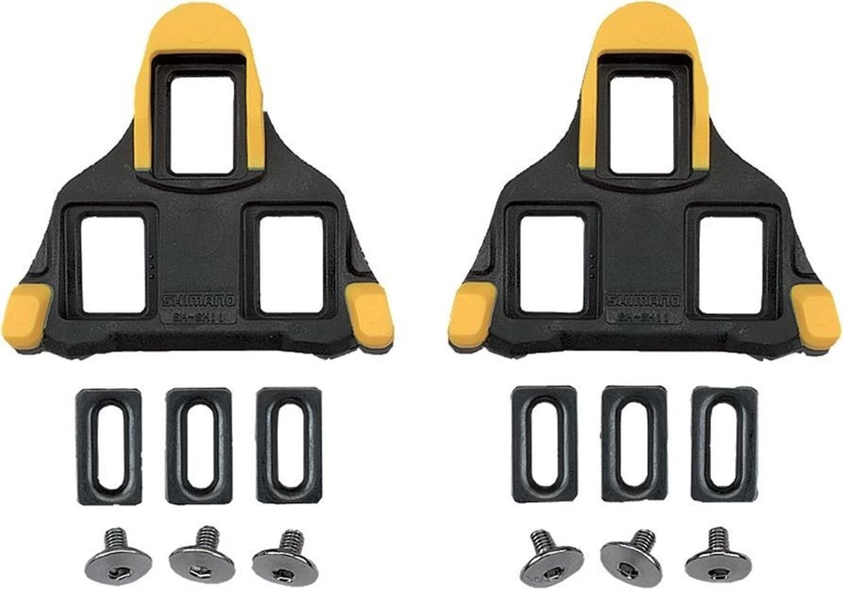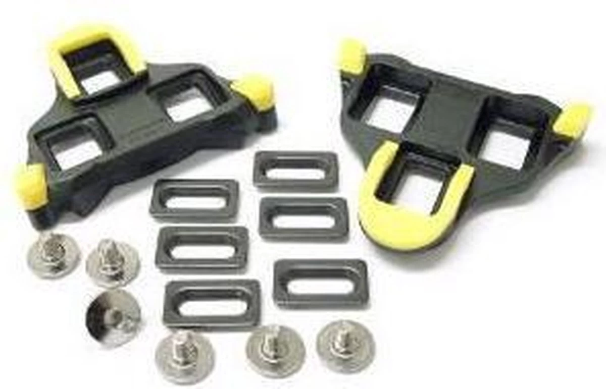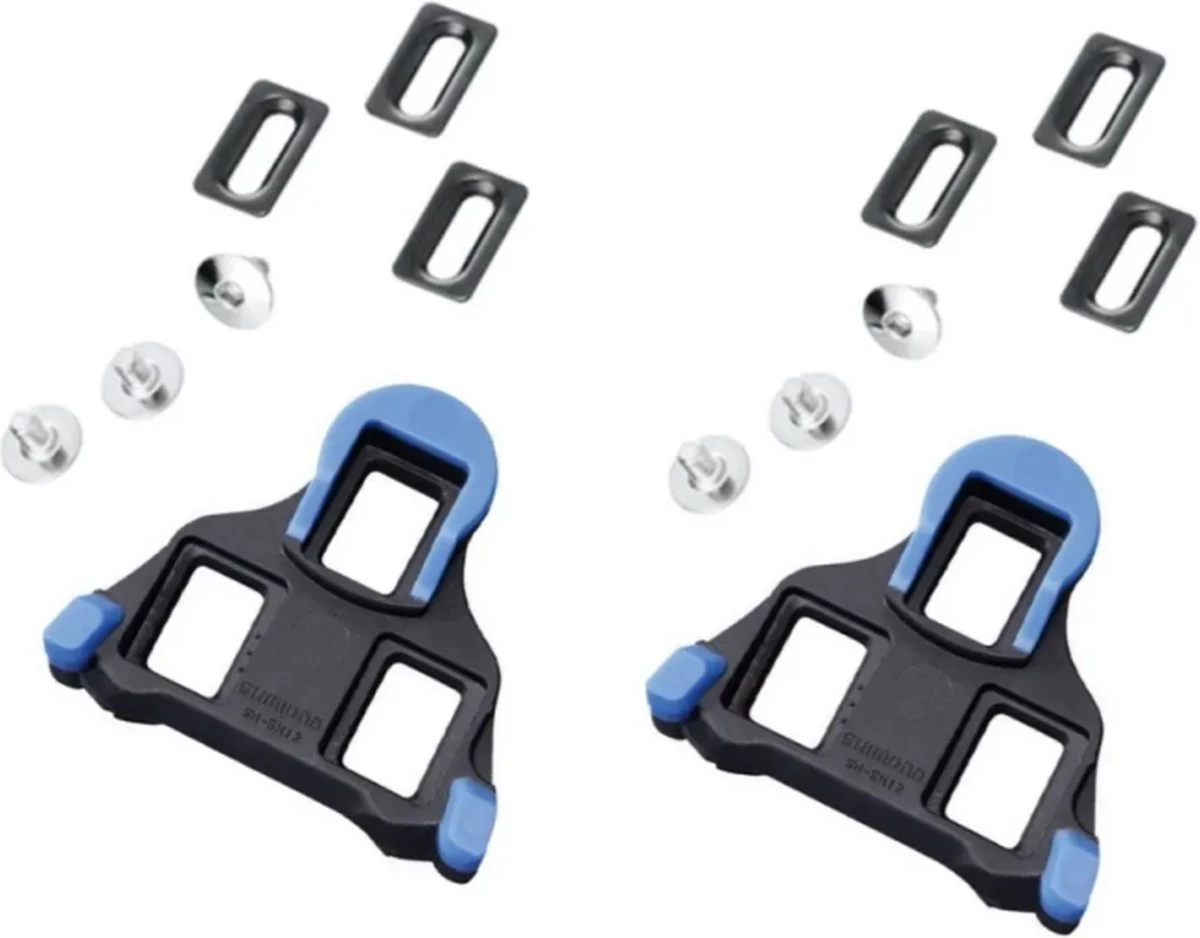 De standaard schoenplaatjes die geleverd worden bij Shimano SPD-SL pedalen.