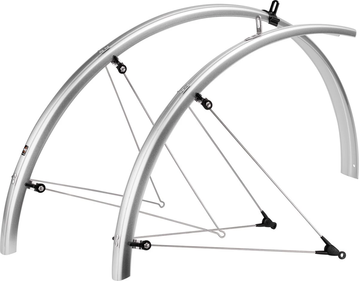 De SKS Bluemels Olympic spatbordenset is uiterst goed bestand tegen corrosie en UV-straling. De spatborden zijn speciaal gemaakt voor fietsen met dunne bandjes. Voor de veiligheid worden de voorsteunen vastgemaakt met ASR bevestigingsclips. De bevestigings stangen en beugels zijn van roestvrijstaal en uiterst duurzaam. Geschikt voor een fiets met 28” wielmaat.