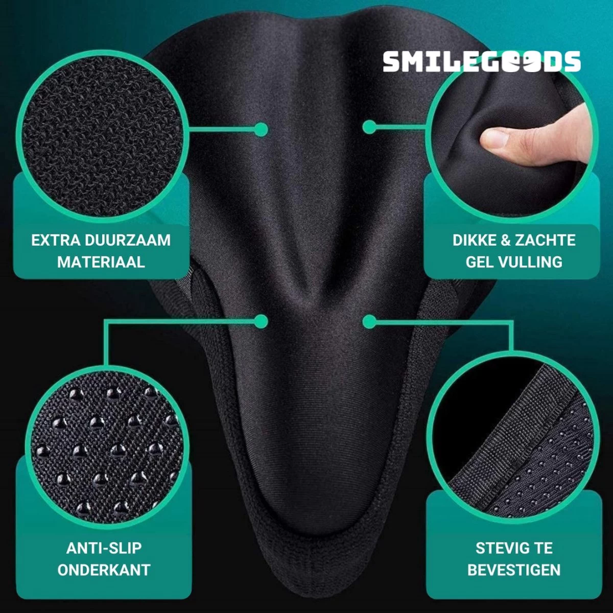 Met de Smilegoods Gel Zadelhoes kun je zeer comfortabel fietsen of een work-out doen op de hometrainer zonder dat je last hebt van zadelpijn. Deze ergonomische zadelhoes vormt zich naar de contouren van uw bekken en biedt maximale ondersteuning en comfort.