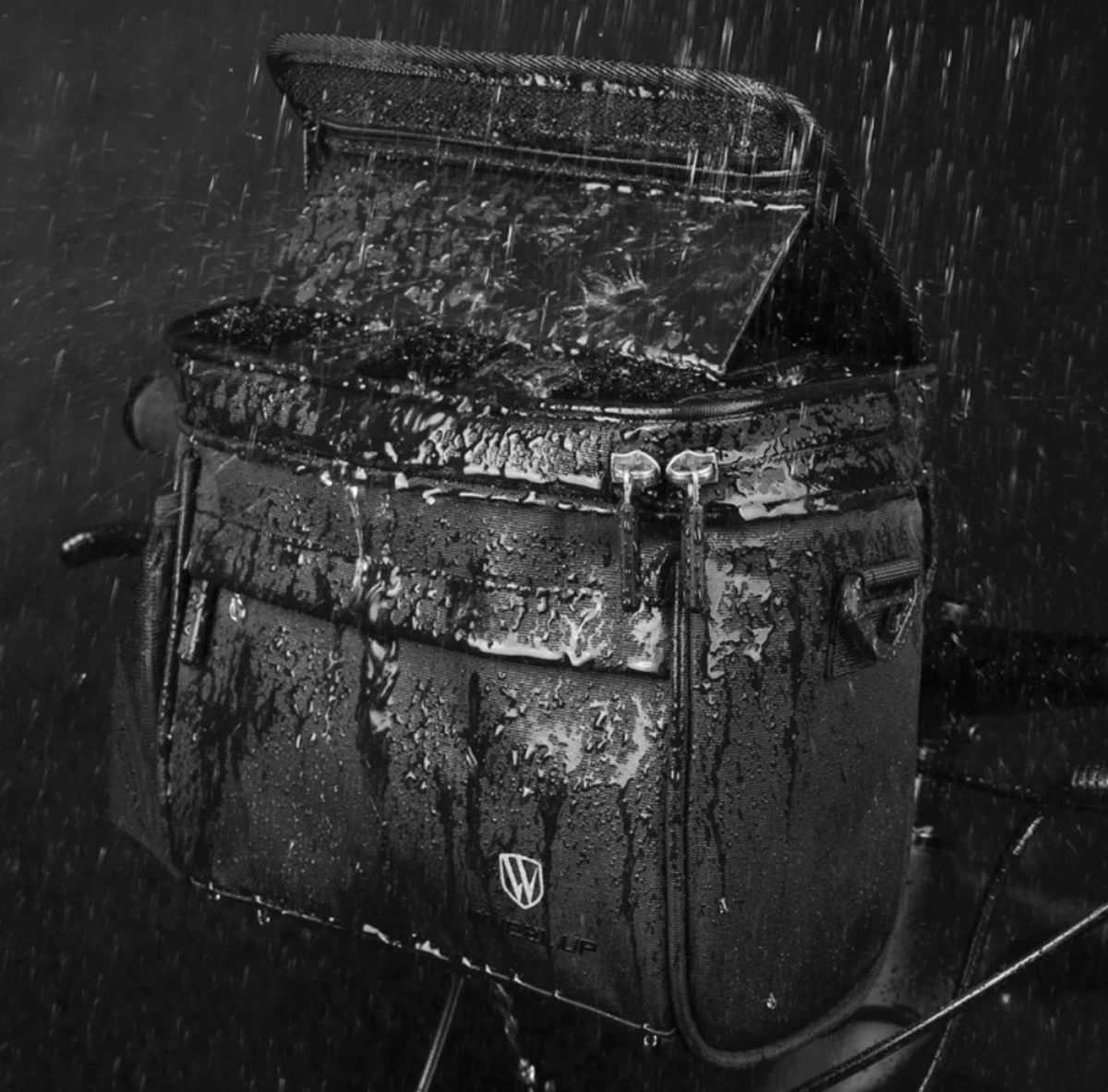 Aan de bovenzijde van de tas kan men de telefoon, kaart of navigatie waterdicht opbergen.
