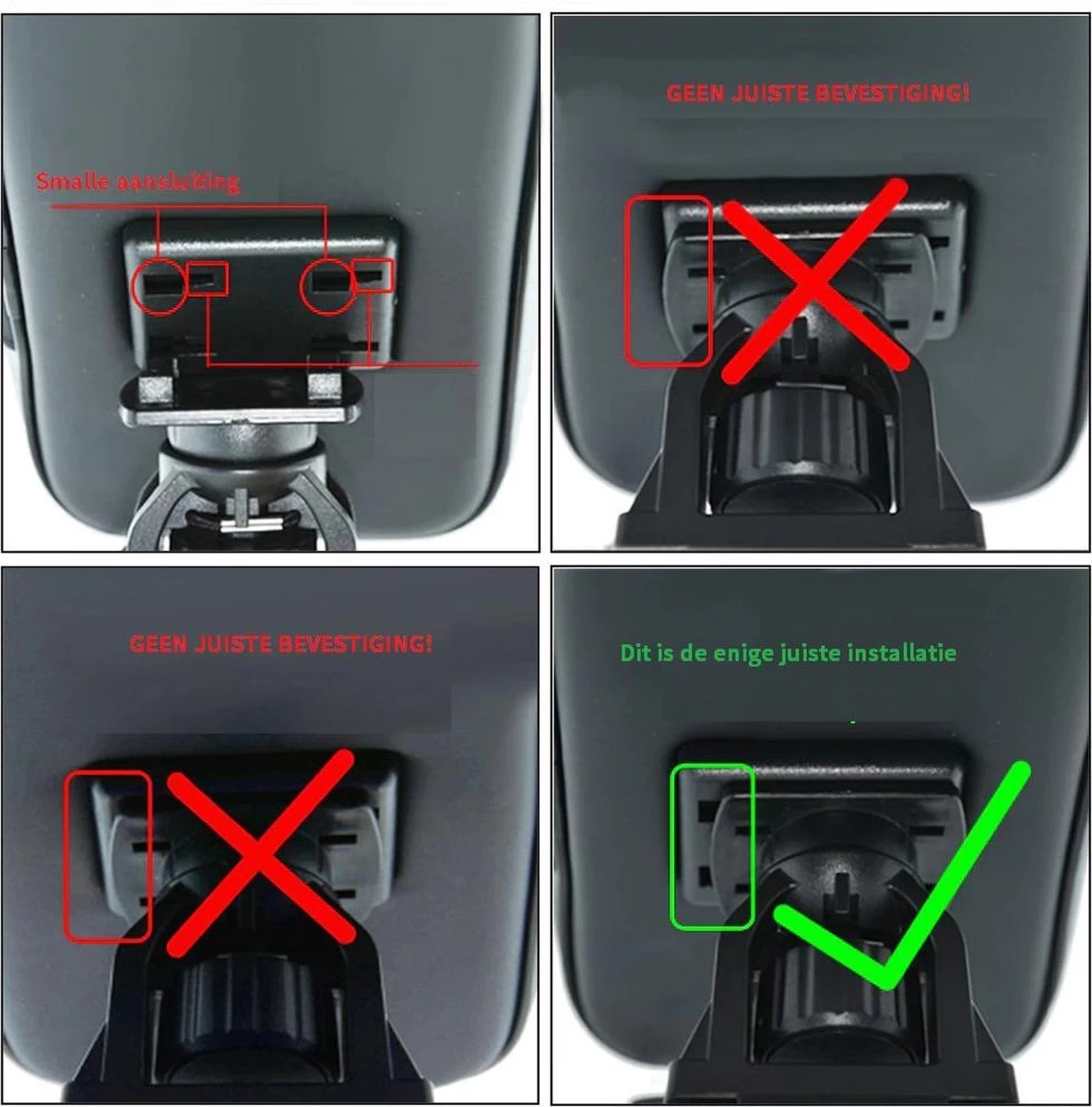 U bevestigt de beschermhoes op de houder door een eenvoudig klik systeem. Het kan zijn dat u veel kracht moet zetten om de hoes op de houder te klikken, maar dit is normaal. Het zorgt zo tevens voor een betrouwbare bevestiging. Wanneer u de fiets of motor parkeert, dan kunt u dankzij de rits snel uw smartphone eruit halen. De houder is zo gemaakt dat u deze kan bevestigen op de zijspiegel van uw motor, of eventuele andere stangen met een maximale diameter van 10 mm. Zie eventueel de installatie foto. Door middel van meegeleverde opvulling kunnen kleinere devices makkelijk “strakker” in de weersbestendige hoes worden geplaatst.