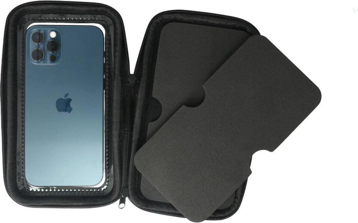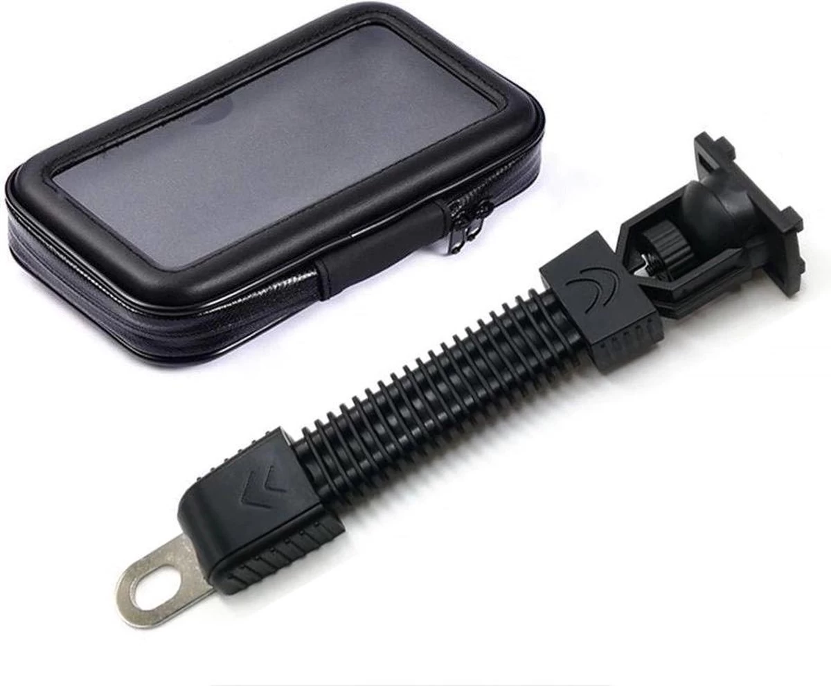 Wilt u uw smartphone meenemen op de motor of scooter en gebruiken voor o.a. navigatie? Dat kan met deze regenbestendige motorhouder. De houder maakt het mogelijk om de telefoon te gebruiken voor bijvoorbeeld navigatie onderweg, terwijl de hoes het toestel beschermt tegen onder andere regen en sneeuw. Het touchscreen blijft gewoon te bedienen met dank aan het aanraakgevoelige venster. De telefoonhouder is ook te gebruiken op een scootmobiel met achteruitkijkspiegel