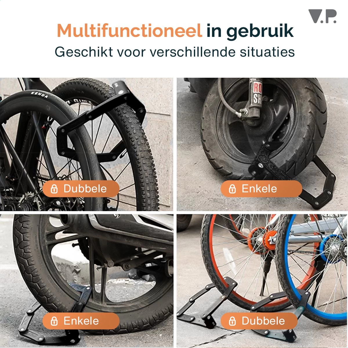 Handig als tweede fietsslot โ zet je fiets รฉxtra goed op slot met het V.P. vouwslot.