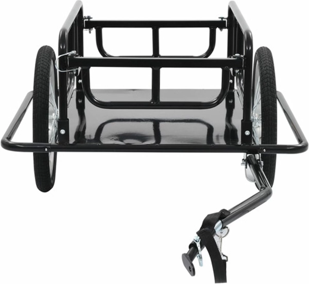 Deze fietskar is zeer stevig en duurzaam dankzij de robuuste stalen frameconstructie. De inklapbare trekstang en inklapbare zijkanten zorgen ervoor dat de kar zeer weinig ruimte in beslag neemt bij opslag en transport. Deze fietstrailer is eenvoudig te monteren.