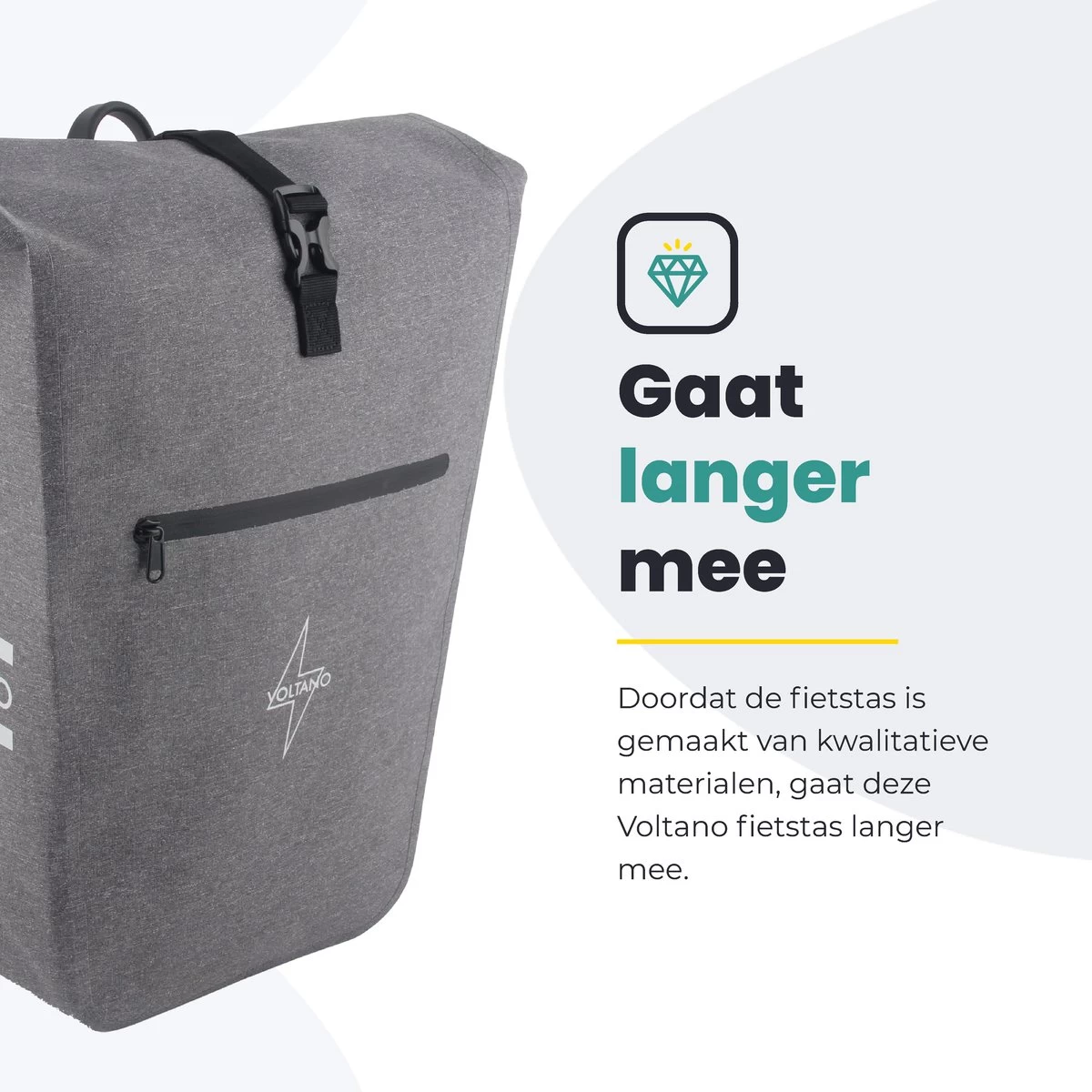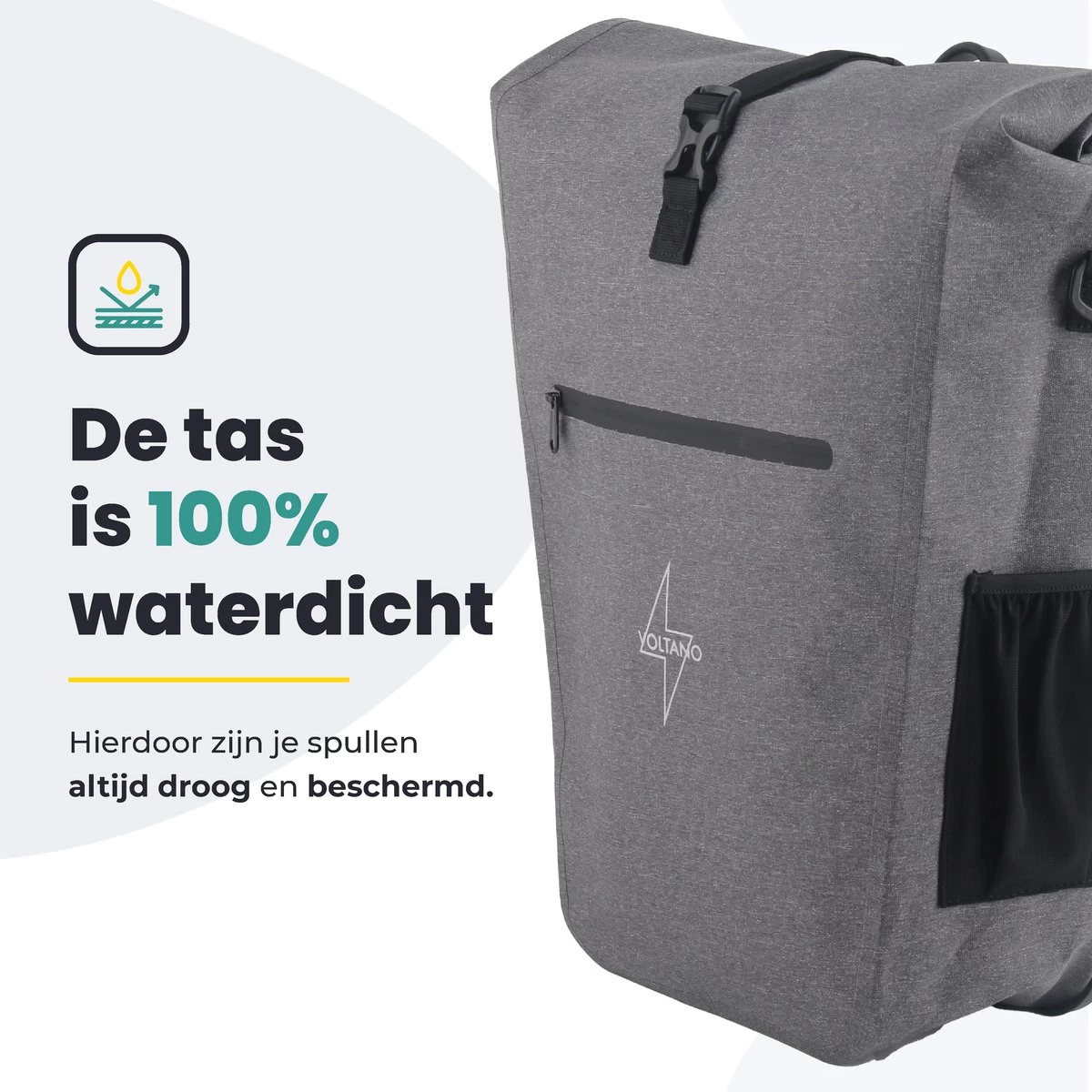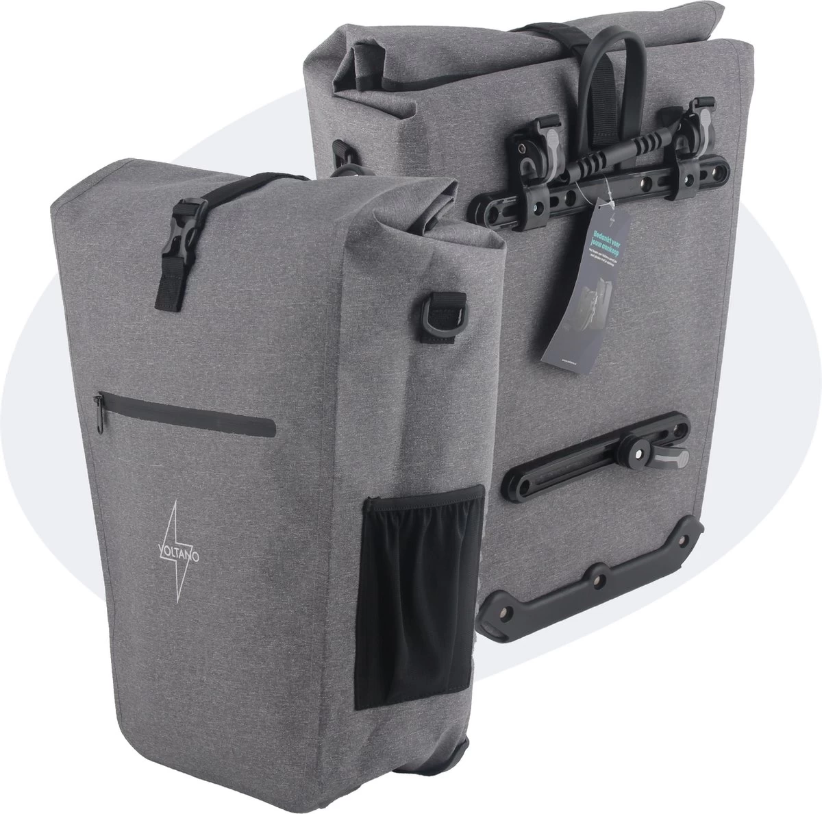 Voltano Luxe E-bike Fietstas 28L โ Grijs โ Pakaftas Met Laptop vak โ 100% Waterdicht – Met Gratis Schouderband