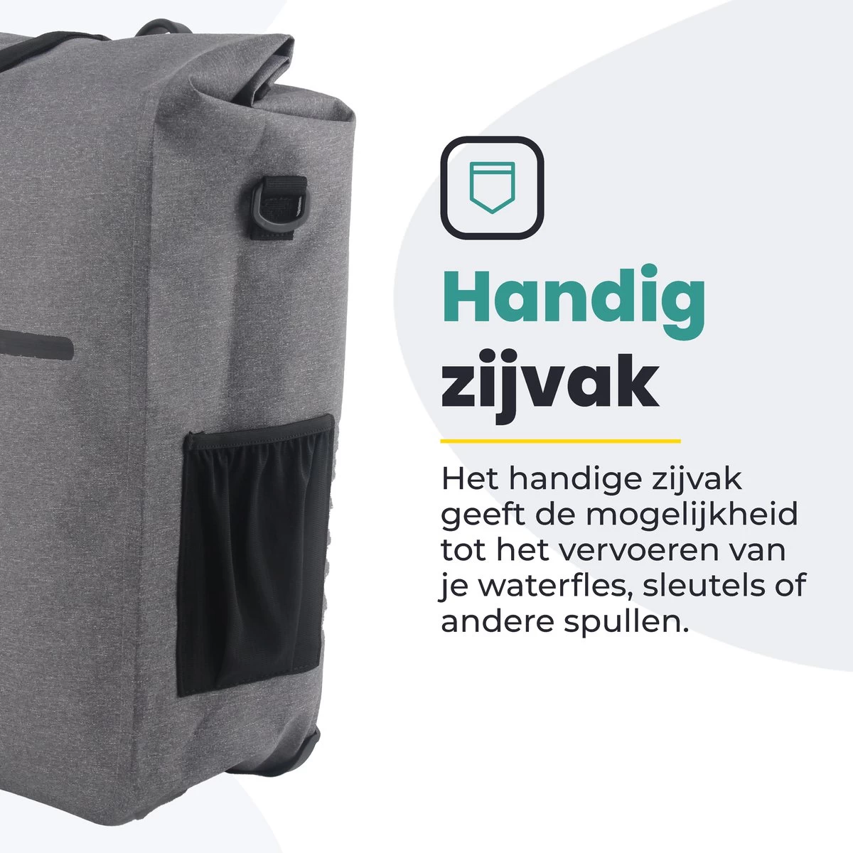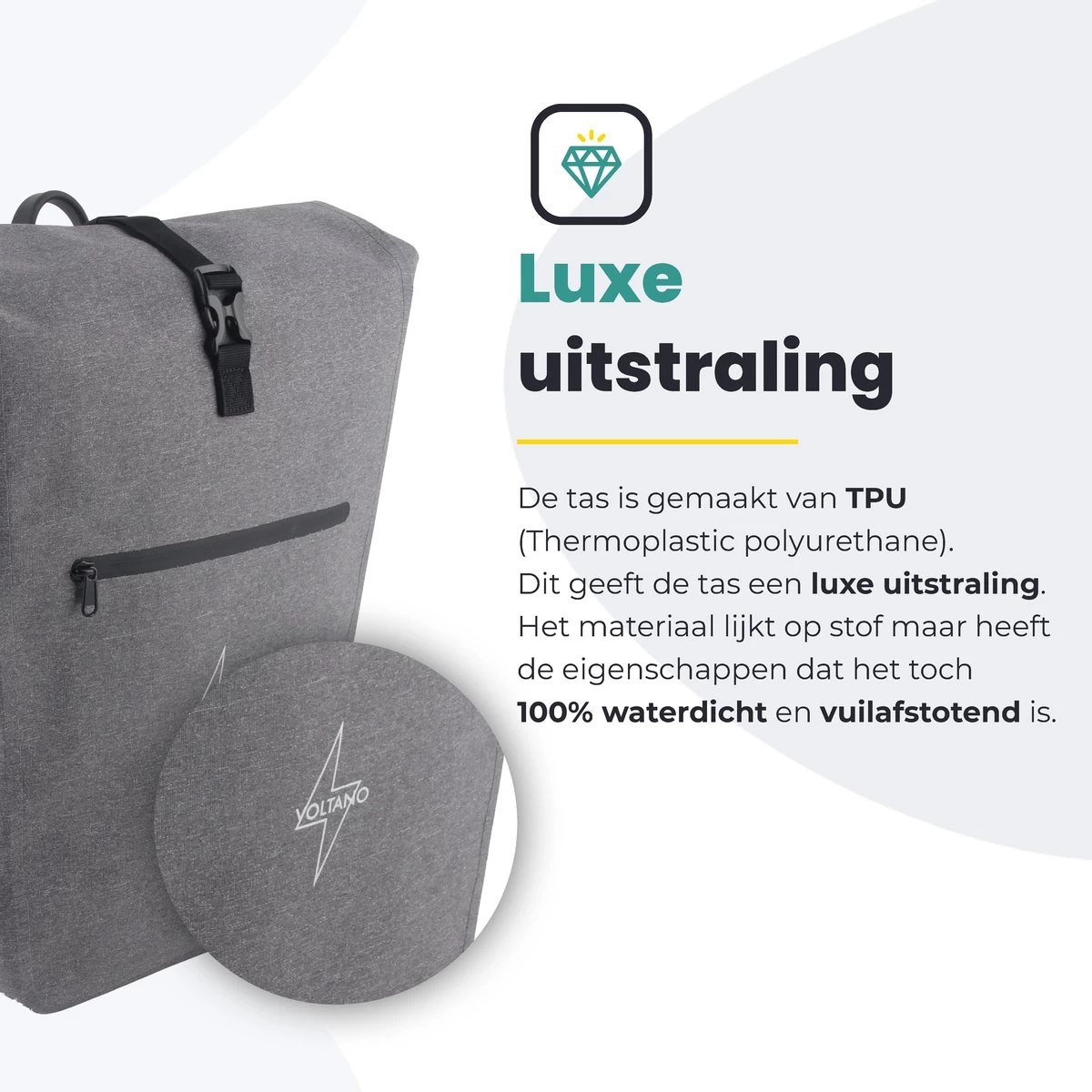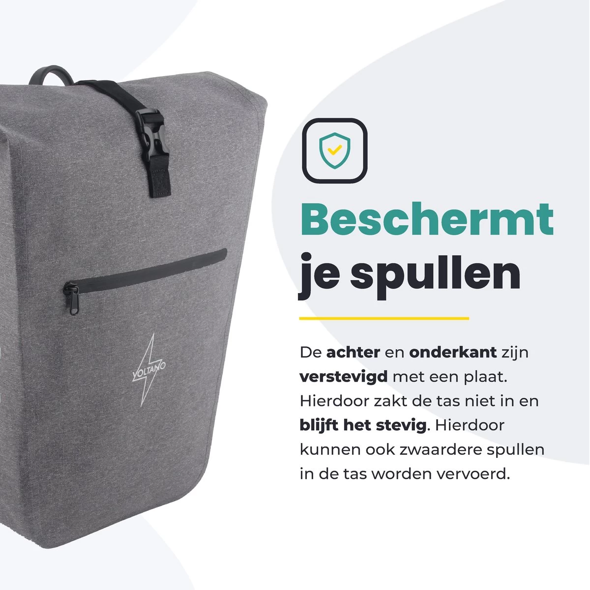 Voltano Luxe E-bike Fietstas 28L โ Grijs โ Pakaftas Met Laptop vak โ 100% Waterdicht – Met Gratis Schouderband