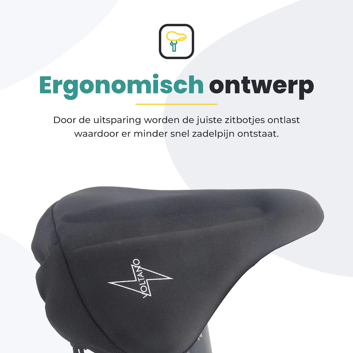 Over de Voltano Luxe Gel Zadelhoes Fiets โ Zwart โ Met Uitsparing โ Brede Fietszadels – 100% Waterdicht – Universele Zadeldek